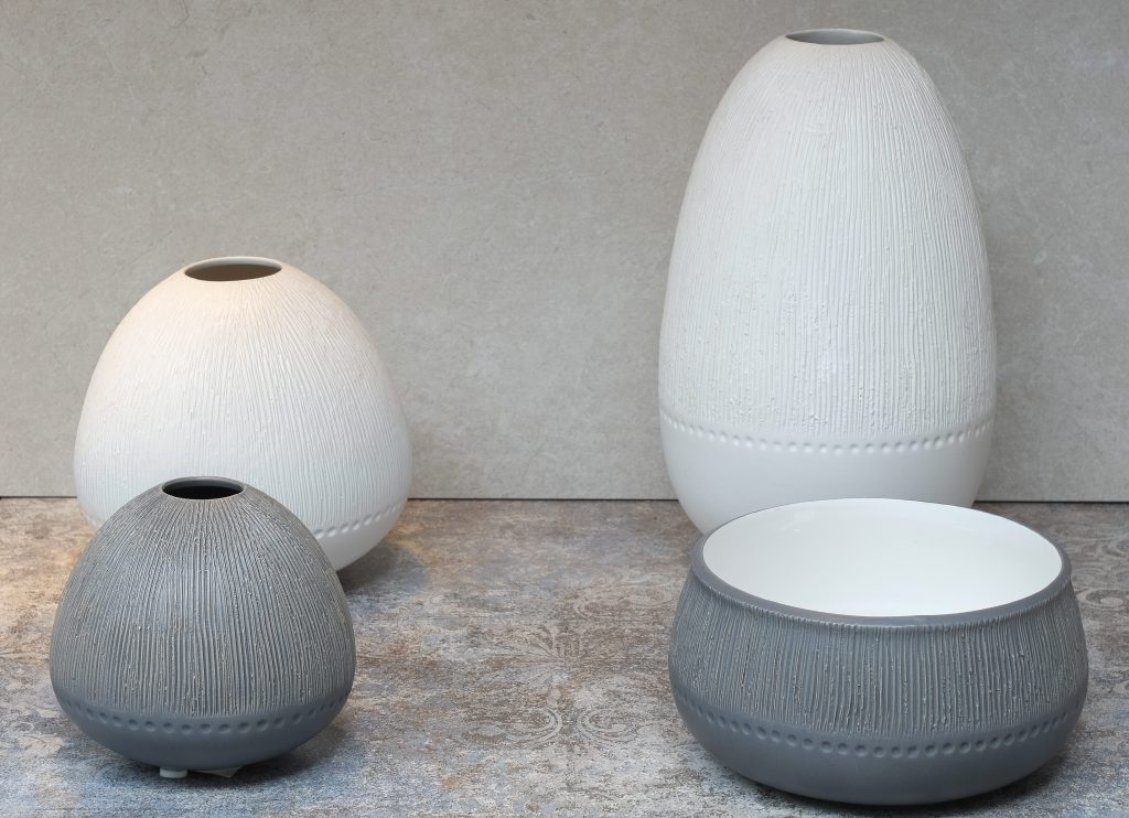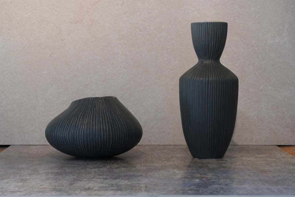 The Sibba collection stands out with its unique feature: select white pieces are available in misty woodruff white. This elegant detail is particularly showcased in the collection’s vases, adding a touch of sophistication to their minimalist design.